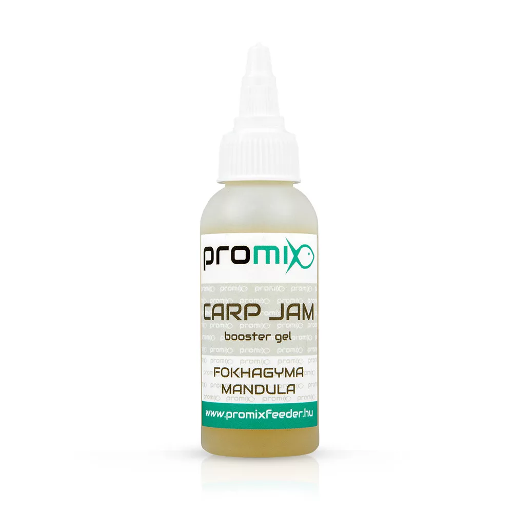 Атрактор Promix Carp Jam Booster Gel Garlic – Almond – Както подсказва името, атрактора придобива окончателното си състояние чрез варене, като истинско сладко. Текстурата му е подобна на сладко /конфитюр/. Това гарантира, че ще мощни далечни хвърляния и съпътстващите ги интензивни удари във водата без да пада от кошницата или метод фидер хранилката. Веднага щом попадне във водата, веднага започва да се разтваря, очертавайки ивица от повърхността на водата до дъното. Мощният облак от вкус в него се разпростира върху дъното, засилвайки ефекта с подобрители на апетита и аминокиселини. Изключително силен аромат на чесън и бадем.