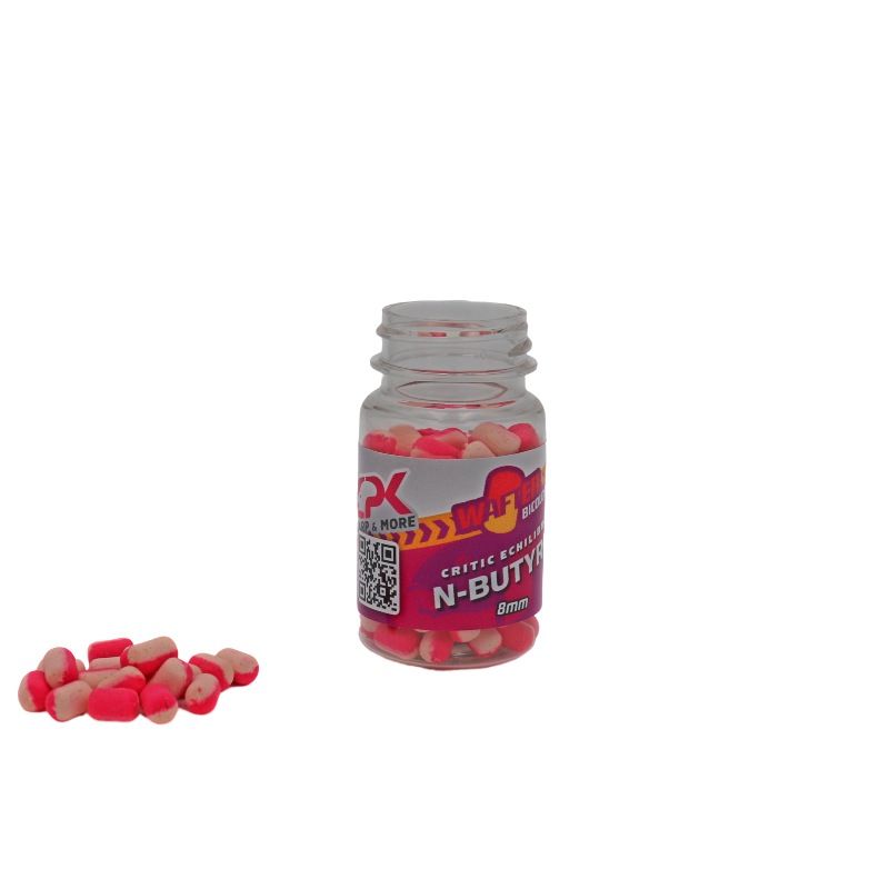 Балансирани дъмбели CPK Wafter Bicolor N – Butyric 8mm – Критично балансирани дъмбели за кука, изградени върху сложен микс. Съчетават висока плаваемост с изключително ниво на атрактивност. На първо място, уафтърите имат силно визуално въздействие поради ярките цветове. Невъзможни са за пренебрегване дори от най-апатичните риби. На второ място, тези дъмбели предлагат неустоимо обонятелно привличане поради своите аромати и атрактанти с доказана ефективност във времето. Новите CPK Wafter Bicolor yафтъри могат да се монтират към куката със силиконов ринг или ĸocъм c телче ( bауоnеtѕ ). Предлагат се в широка гама от вкусове и цветове и ще се окажат опустошителни при риболов с метод фидер или PVA стикове. Аромат: Мастна киселина, двуцветни.
