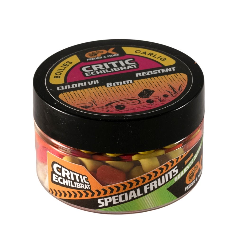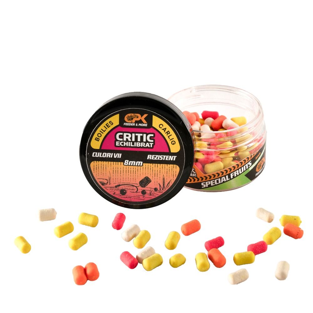 Балансирани дъмбели CPK Wafters Feeder Critic Echilibrat – Критично балансирани дъмбели, които са създадени върху сложна смес, която предлага висока степен на плаваемост дори за дълги периоди от време. Съставът на Wafters / Critic балансирани CPK дъмбели включва атрактанти, които са доказали своята ефективност във времето при улавяне на шаран и визуалното въздействие е силно чрез гамата от цветове, които предлагаме. Тъй като са по-леки, те ще летят по-бързо в устата на шарана, когато бъдат засмукани, ефективността им е доказана! Предлагат се в няколко аромата: Special Fruits /специални плодове/, Orange & Chocolate /портокал и шоколад/, Krill /крил/, Usturoi /чесън/. Размер: 8мм.