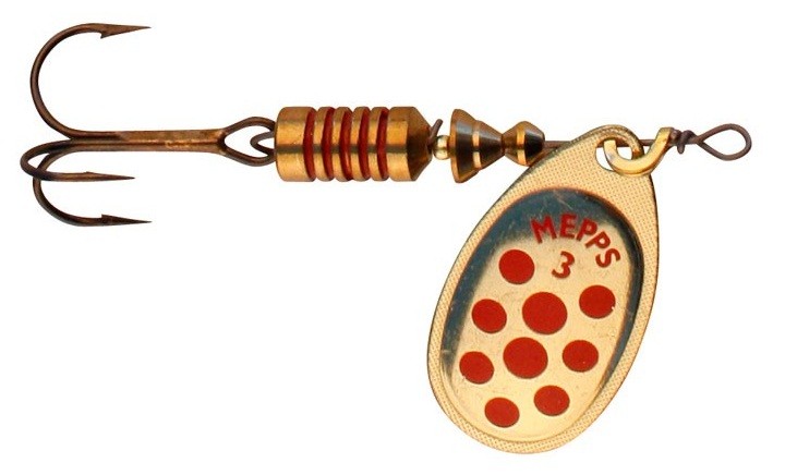 Блесна Mepps Aglia Decore OR, RGE – блесната за всякакъв вид риба! Уникално добре проектирана да започне своето гладко движение в мига, в който докосне водата. Ъгълът на ротация на крилото постоянно се адаптира към скоростта и силата на течението или на обирането, така че Aglia винаги издава правилни и отчетливи вибрации. Цветните точки разделят светлинния спектър на листото, като по този начин подчертават ефекта за движение. Като резултат от зрението на рибите ‘в забавено движение’, точките на въртящото се листо не изглеждат като залепени, а дори напротив, отчетливо се възприемат като отделни движещи се елементи, което придава на блесната допълнителен живот и задейства агресивността на хищника. Цвят: златен/червени точки
