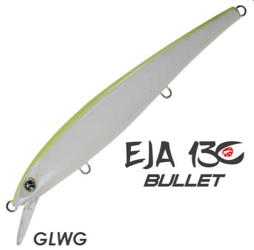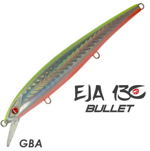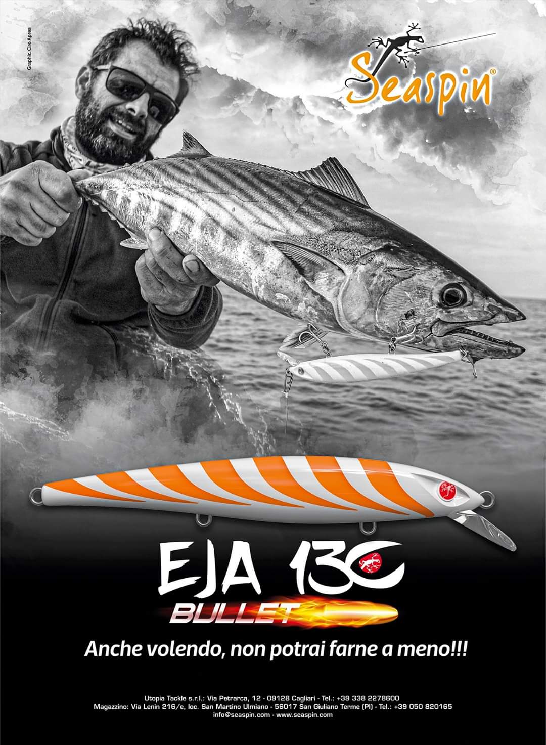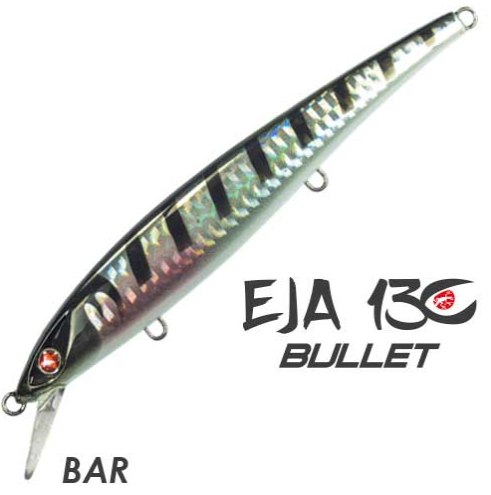 Seaspin Eja Bullet 130S е нов воблер от SeaSpin, който задължително трябва да присъства в кутията Ви с примамки, независимо дали ловите в сладка или солена вода. Благодарение на свеоето аеродинамично тяло и грамажа му, воблерът лети като куршум и е изключително подвижен във водата. Оборудван е с висок клас куки. Подходящ е за соленоводен риболов на лефер, лаврак, баракуда, бонито и други, както и за щука, и сом в сладки води. Eja Bullet ще Ви помогне във всяка една ситуация, играта му е наистина впечатляваща, като може да го водите бавно, бързо и с малки паузи. Подходящ е също така и за риболов във силно вълнение, тъй като той стои тежко във водата и няма да бъде изхвърлен. Дълбочината на газене му е от 70см до 1.30м.