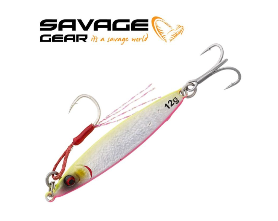 Джиг Savage Gear Flatline TG 15гр – Проектиран да се хвърля далеч и да достигне бързо дълбочина, дори при по-силни течения. Примамката блести ярко и вибрира като ранена риба при пропадане. Оборудван със здрава тройна и асист кука от предната част на примамката.