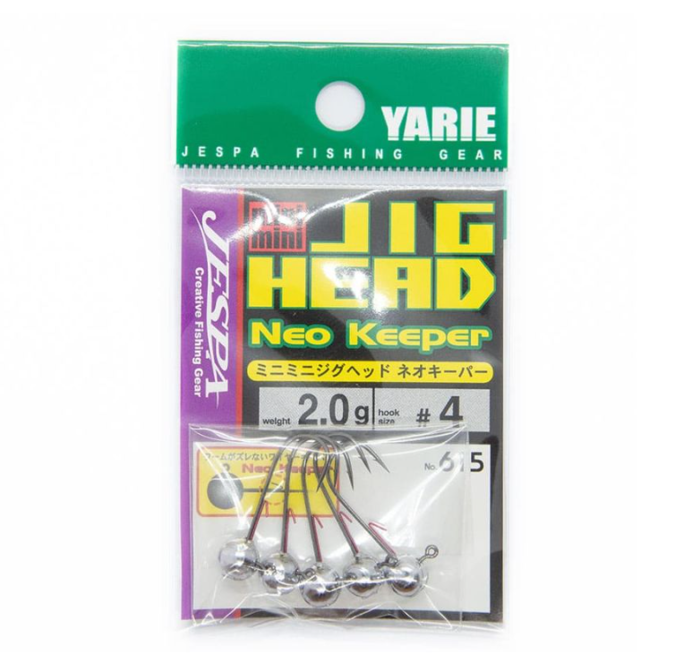 Джиг глави Yarie 615 Minimini Jig Head Neo Keeper #4 – Серия леки джиг глави, предназначени за ултра-лайт риболов. Оборудвани с висококачествена и здрава японска кука. Номер на куката: 4.