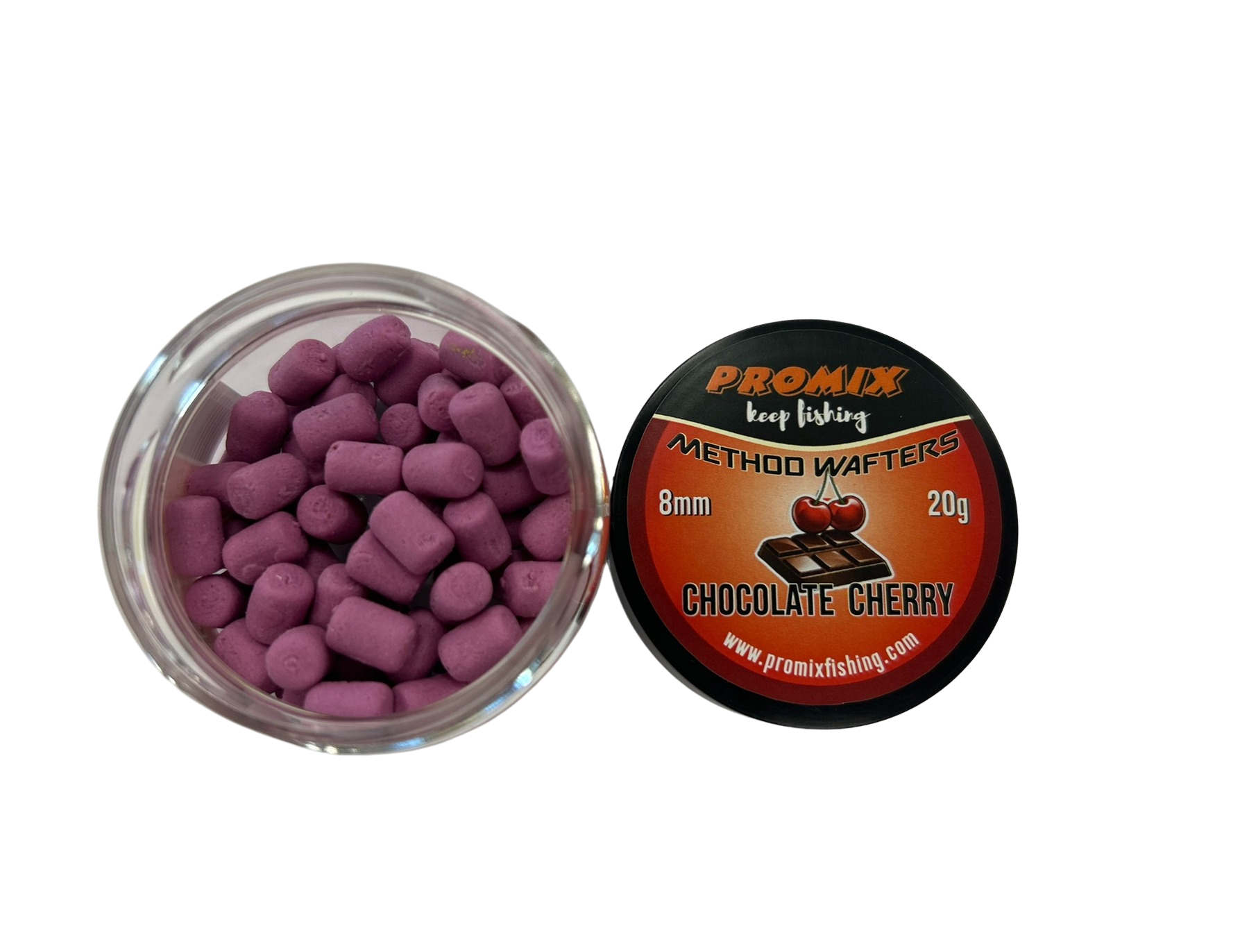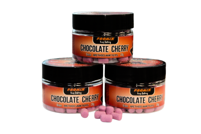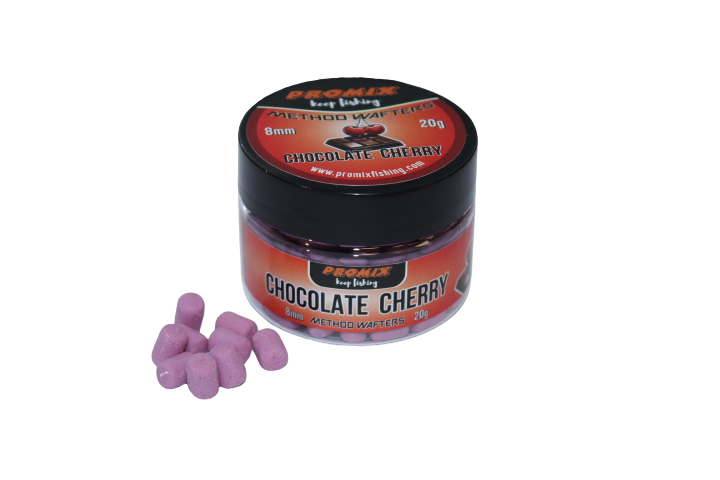 Дъмбели PROMIX Method Wafters Chocolate & Cherry 8mm – Дъмбели за метод фидер риболов, създадени след редица тестове в свободна и състезателна среда. Решихме да създадем дъмбели по наш вкус и цвят и да сме сигурни че се представят перфектно по време на риболов. Дъмбелите са критично балансирани с лилав цвят и наситен аромат на шоколад и череша. Притежават също така и перфектна плаваемост. Независимо колко време ще престоят във водата, дъмбелите няма да спрат да отделят аромат. Подходящи за монтиране с bayonet /шип/ или bait band /силиконов ринг/. Тези дъмбели сме ги създали с лилав „измит“ цвят за мнителни и трудни риби. Размер: 8мм, Аромат: Шоколад и череша , Цвят: Лилав, Грамаж: 20г.