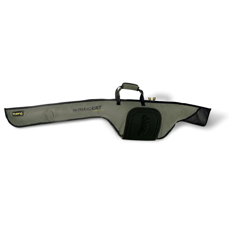 Black Cat Battle Cat Single Rod е калъф за 1 въдица с макара, като отделението за макарата е достатъчно дълбоко, за да събере дори мултипликатор с голям размер.Калъфът може да бъде отворен удобно по цялата му дължина благодарение на непрекъснатия цип. Калъфът е със специално полихлоридно покритие, което пази от вода, кал и пясък. Циповете също са водонепропускливи и са защитени от кал и пясък. Дължина: 1.80м. Изключително подходящ калъф за въдица за кльонк.
