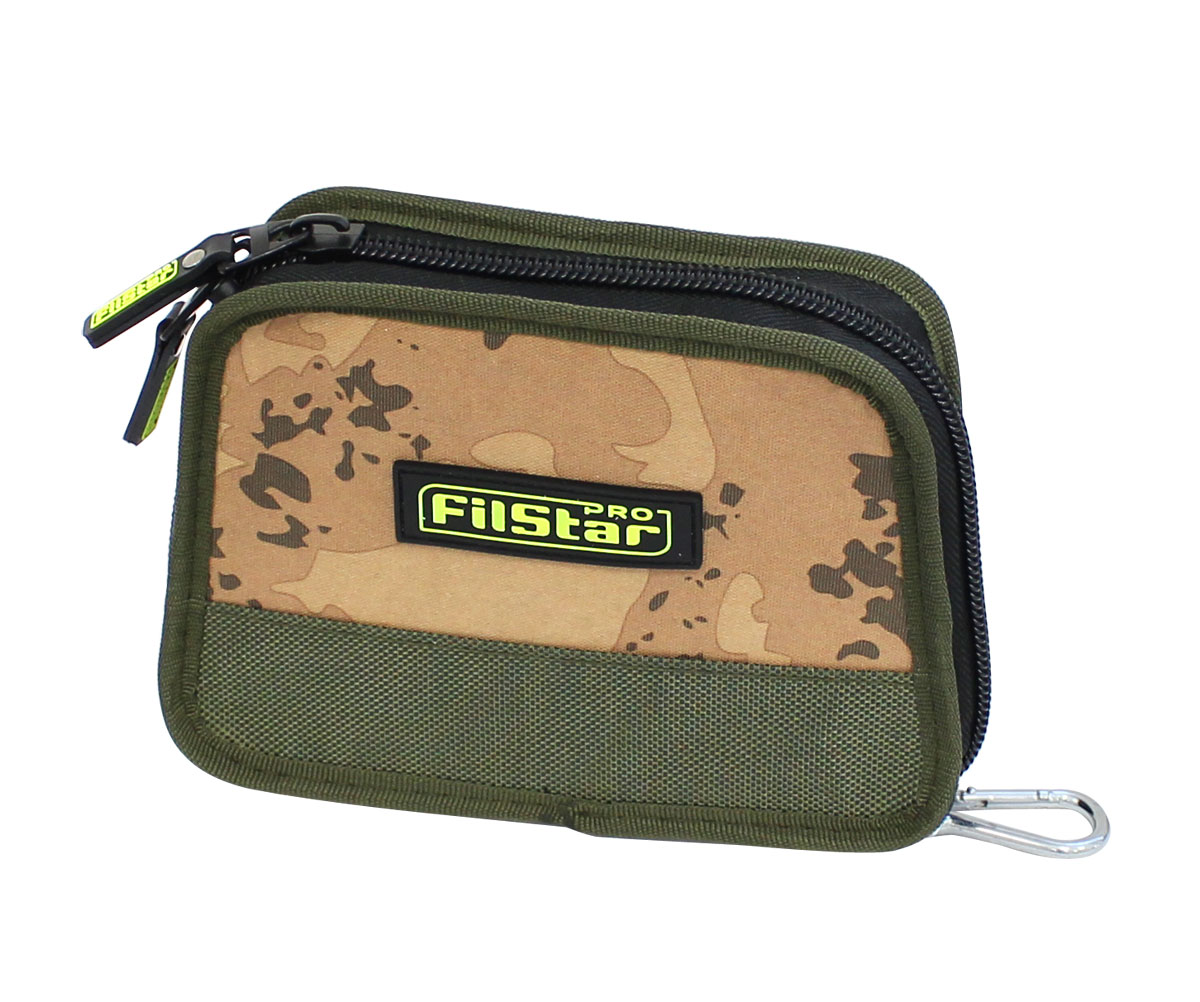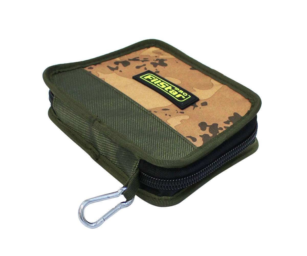 Класьор за блесни FilStar – 4L ви предоставя удобен вариант да подредите и съхранявате вашите блесни. Моделът разполага с четири EVA подложки за закачане на блесни, като между тях са поставени солидни прозрачни разделители. FilStar – 4L има перфектен външен вид с камуфлажни детайли, изработен е от устойчиви материали и е снабден с двоен цип, гуменo лого Filstar и удобен карабинер за закачане на колан или др. Размери: 19х14х4.00см.