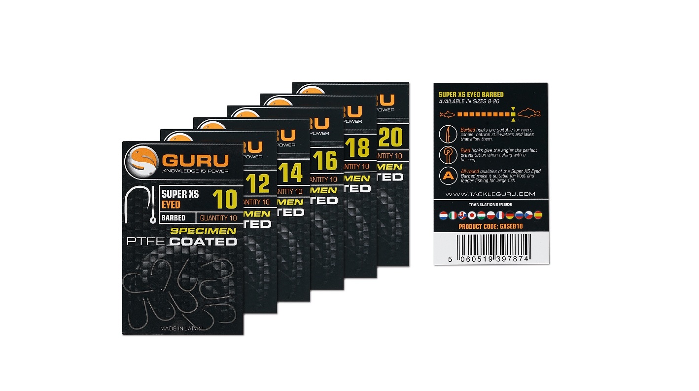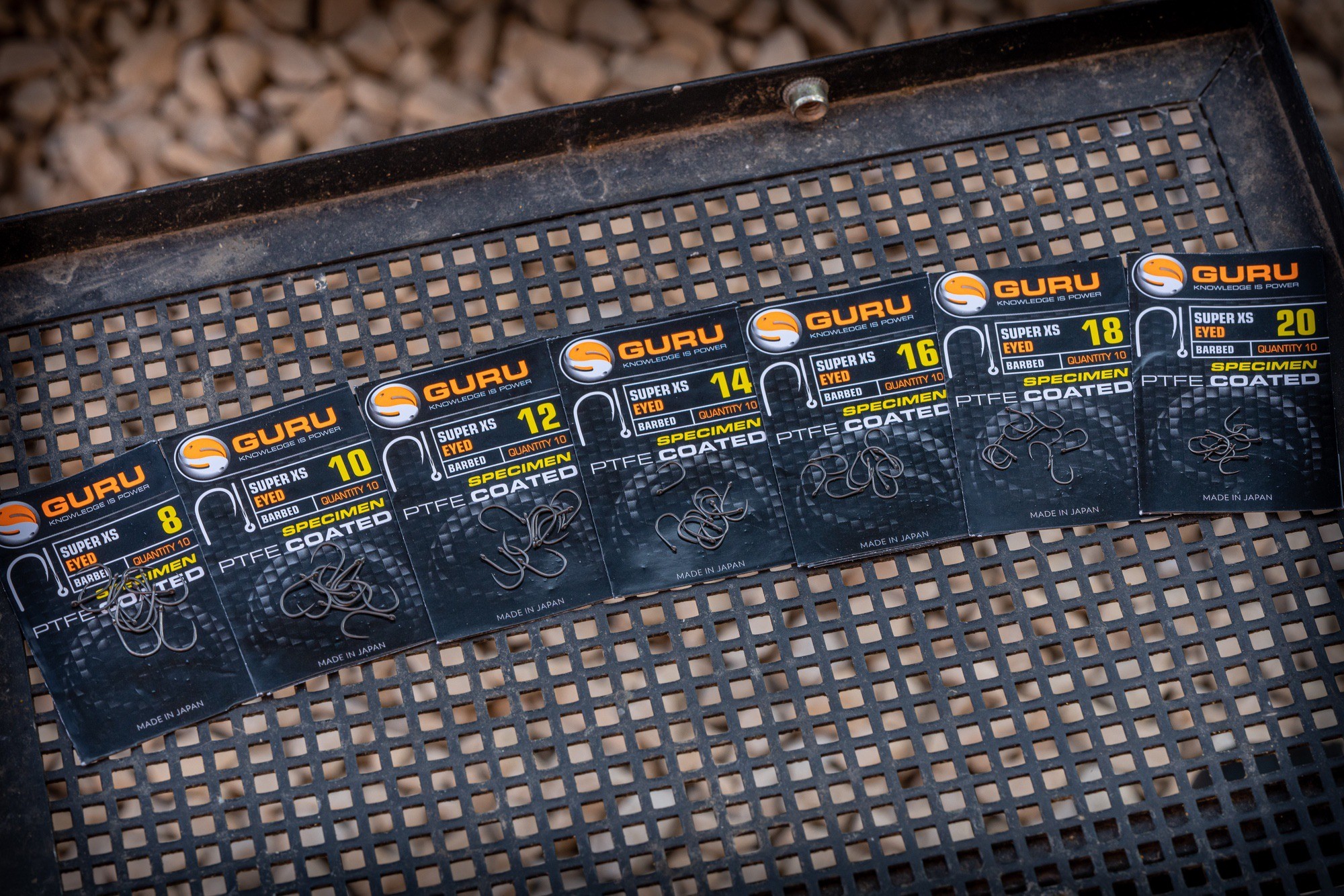 Куки с ухо Guru Super XS Barbed/Eyed – Куки с контра и ухо, които са изключително здрави и надеждни. Проектирани за риболов с щека или директен телескоп, но те намират перфектно приложение в метод фидер риболова. Късо рамо и широка извивка. Перфектни за големи шарани и каракуди. Куките са без контра, но широката им извивка и издължен връх задържат всяка риба.