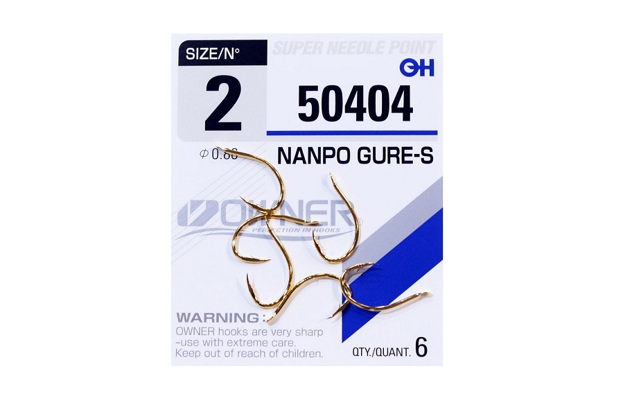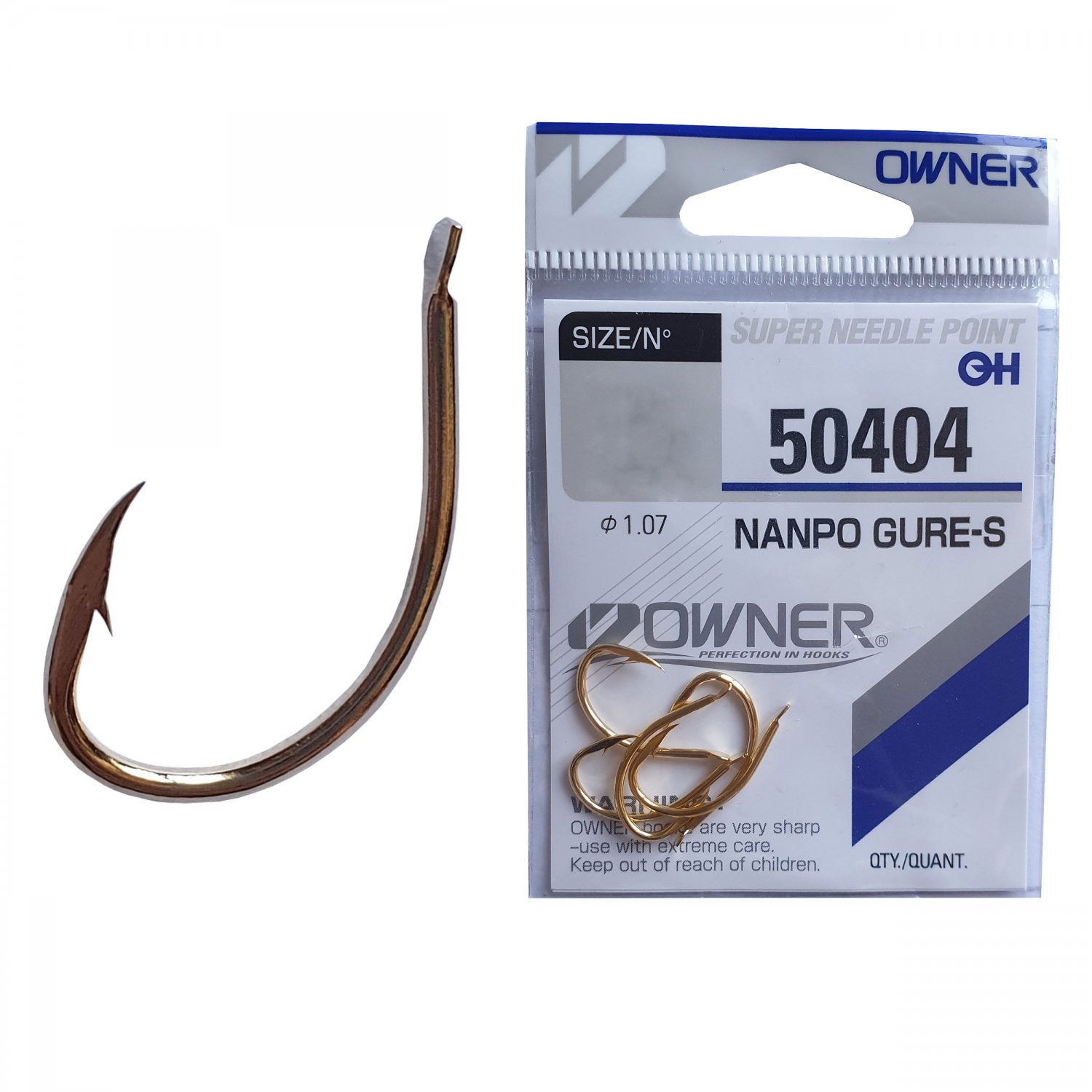 Owner Nanpo Gure-S Gold е жълта кука с широка извивка и сравнително късо рамо. Куката е кована, лазерно заточена и е много остра с дълго жило, леко извито навътре. Безпроблемно пробива и най-твърдите устни. Има ясно изразена контра и позволява добро задържане на рибата. Подходяща за риболов на плувка, фидер и дъно на по – големи шаранови екземпляри. Удачна е за царевица, жито, пелети и др.