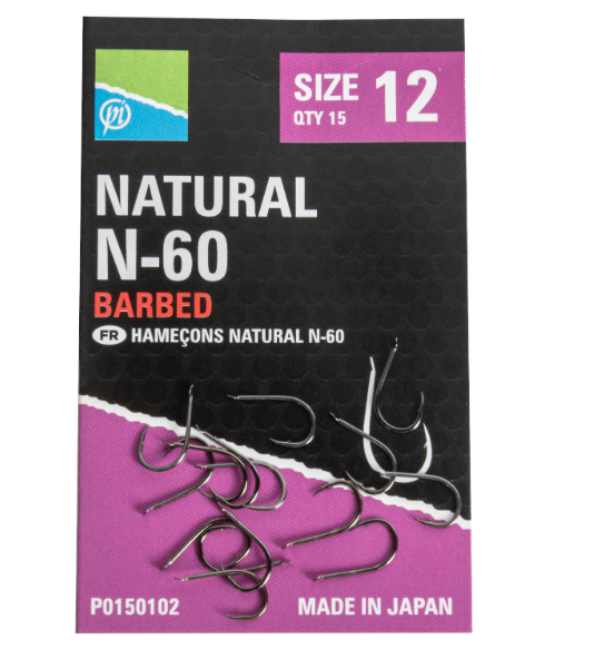 Куки Preston Natural N-60 – Много остри и здрави куки с контра. Създадени специално за риболов на шаран с едра стръв. Подходящи са за риболов с царевица или земен червей, независимо дали ловите на плувка или фидер. С покритие от черен никел и заострен връх, този модел куки са остри като бръснач. Разполагат с дължа дръжка и голяма лопата, за да ги връзвате безпроблемно и с по – дебели влакна. Куките се предлагат по 15бр. в опаковка!
