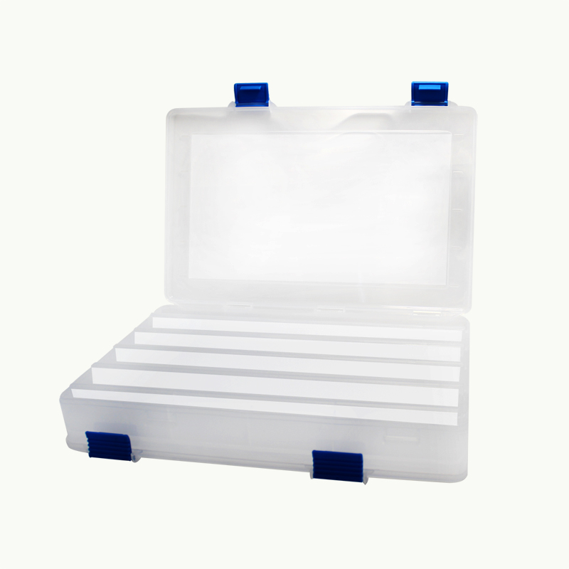 Двустранна проразчна кутия за големи изкуствени примамки. Кутията разполага с по пет отделения от двете страни. Размери на кутията: 35.5x23x6см.