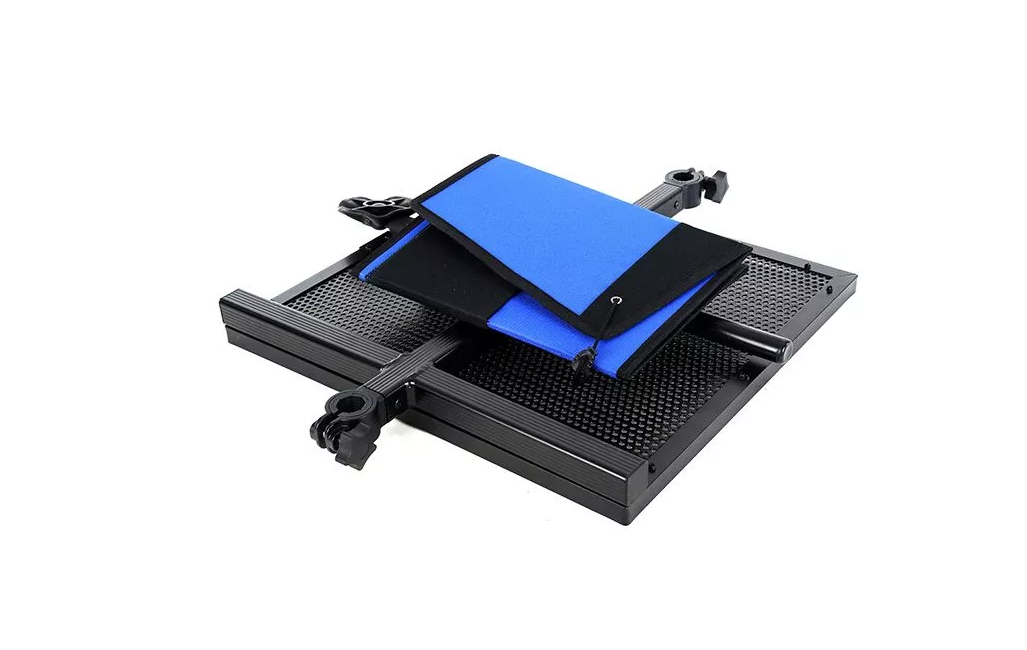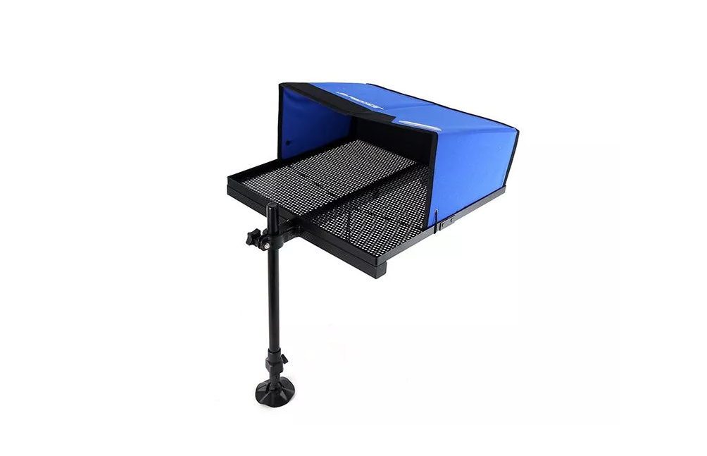 Маса прикачно Formax FXEL – 011050 – Маса със сенник на изключително достъпна цена! Масата е изключително стабилна с твърдо покритие и сенник, който ще запази вашата стръв на сянка и суха. Монтирането на тази маса е възможно на столове за подаване с диаметри 25 и 36 мм (за да се монтира на диаметър 36 мм, адаптерният пръстен първо трябва да бъде отстранен от скобата). Накладката е твърда и се сгъва за транспортиране с лесно сгъване.Размери:50х47см. В комплект към масата има и регулиращ се стабилен крак с широка упора срешу проникване в мека земя като кал и пясък.