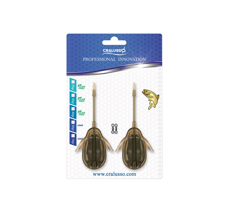 Метод фидер хранилки Cralusso Double Chance Method 2pcs е последната, уникална разработка на Cralusso. Използвайте тази хранилка за още по-успешен риболов! Две примамки с различен вкус и плаваемост могат да бъдат поставени едновременно, за да се намери стръвта победител за деня. Докато издърпвате закачената риба свободната кука се прибира безопасно в тръбата на хранилка, за да не се нарани рибата и да се избегне закачването на куката в камъни или растителност. На гърба на опаковката е показано детайлно описание за начина на използване. Комплектът включва 2бр. метод фидер хранилки и 2бр. вирбели.