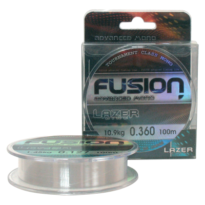 Монофилно влакно Lazer Fusion – Влакно, произведено в Япония по най-иновативни технологии. Невероятно здраво, с превъзходна устойчивост на възел, много меко и нежно, с постоянен диаметър по цялата си дължина. FUSION е с много добра устойчивост на абразия, има защита от UV лъчи, много трудно забележимо е във водата и е с много ниска памет. Съчетава всичко, от което се нуждае един риболовец в днешно време. Налично на 150 метрови ролки в индивидуална прозрачна опаковка. Цвят – кристален.