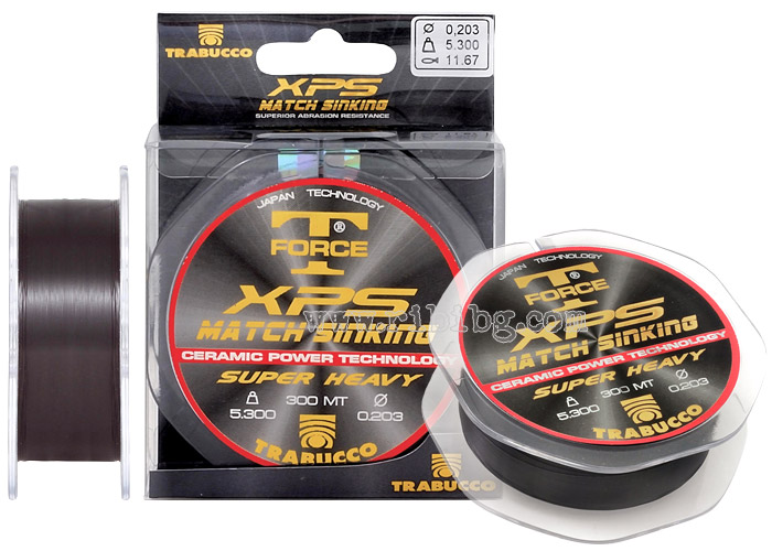 Trabucco T – Force XPS Match Sinking е монофилно влакно, произведено в Япония и специално предназначено за риболов с ваглер или на фидер. Влакното е потъващо с тъмен, черен цвят. Главната характеристика на този иновативен монофил е голямата му тежест, която му позволява много лесно да потъва. Специалното покритие му дава феноменална абразивоустойчивост и липса на памет – основни качества за тези видове риболов, които подлагат влакното на голямо натоварване. Специалната молекулярна структура осигурява ниска еластичност за бързи и сигурни засичания. Предлага се в разфасовка от 150м.
