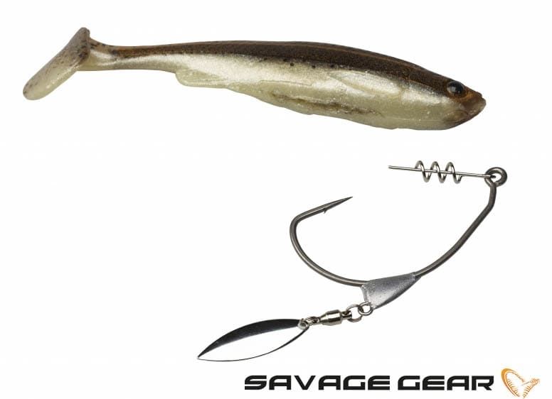 - Утежнението в долния край на куката балансира перфектно примамката