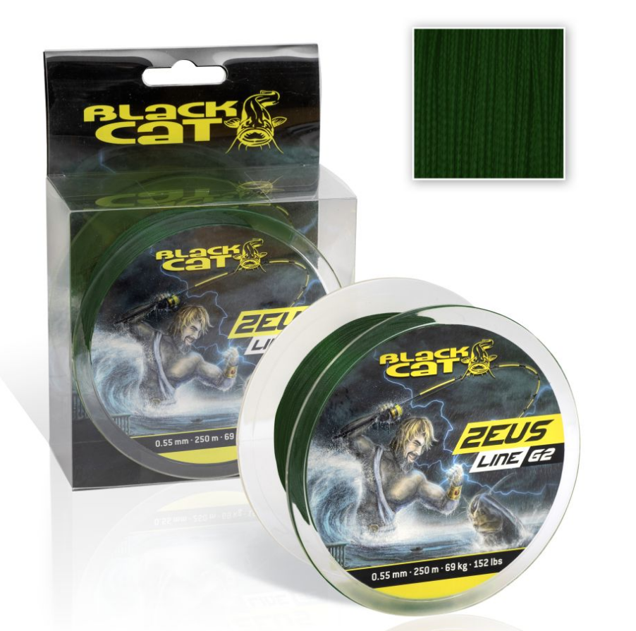 Плетено влакно Black Cat Zeus Line G2 0.55мм 250м е най-новият модел от популярната линия на Black Cat. Това 8-нишково, кръгло и изключително издръжливо плетено влакно е идеално за всички аспекти на съвременния риболов на сом. Дебелина 0.55мм, издръжливост: 69кг. Дължина 250м.