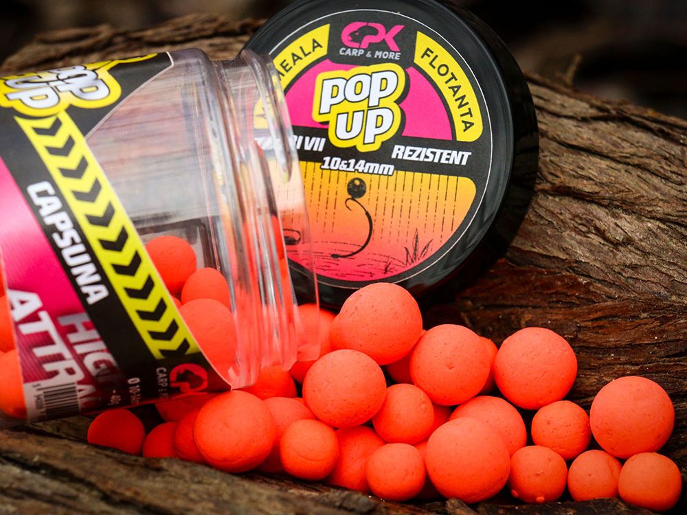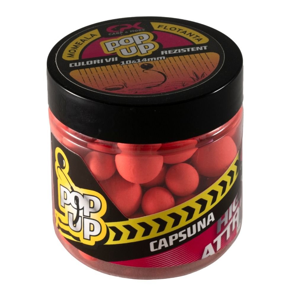 Поп ъп топчета CPK High Attract Strawberry 10 & 14mm – CPK Pop-ups, са несъмнено едни от най-плаваемите продукти на риболовният пазар. В тези бурканчета ще намерите смесени поп ъп топчета с размери 10 и 14мм. Те се доказват всеки път. CPK Pop-up, може прфектно да презентирате Stiff-Hinge Rig, за повече от 24 часа на дъното на всеки един водоем. Базовият микс е добре хомогенизиран и е с лека и въздушна текстура, което позволява постепеното освобождаване на атрактанти, хранителни стимулатури и аромати ! Ние знаем, че визуалното привличане е ключова част при риболова на шаран и за това CPK Pop-ups са налични в широка гама от флуорисцентни и ярки цветове, направени така, че да излъжат и най-внимателните и хитри шарани, също така да задоволят изискванията на най-взискателните шаранджии! Подходящи за метод фидер риболов. Аромат: Ягода, флуоресцентен червен цвят.