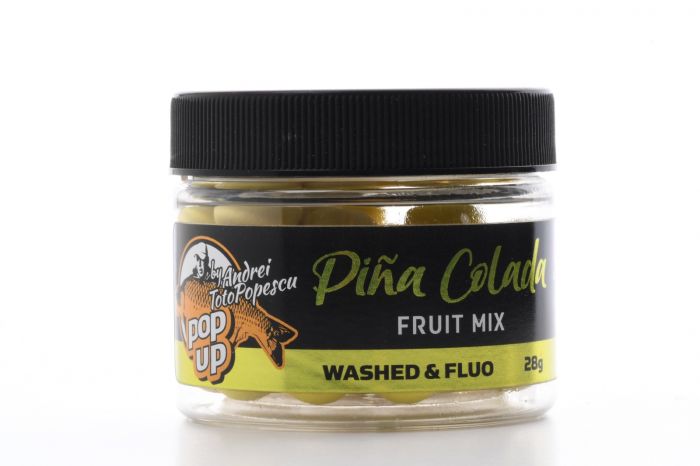 Поп ъп топчета CPK Pop Up Golden Range Pinacolada /Pineapple & Strawberry/ 12mm – Golden Range е нова гама плуващи Pop up топчета от портфолиото на CPK, създадена съвместно с Андрей „Тото“ Попеску. Гамата съдържа 12 мм Pop up топчета в 6 вкусови комбинации, във всеки буркан има 2 вида цвят: измит и флуо. Вариантът fluo е подходящ за мътни води или ситуации, при които рибата се храни много добре, когато стръвта, която се откроява, ще донесе допълнителни функции. Pop up топчета в измитата версия, в “измити” цветове, са идеални при риболов в много чиста вода или рибата се храни апатично и може да не е склонна да се доближи до шумна стръв. Тези примамки за куки са изградени върху сложна смес, която съчетава висока плаваемост с изключително ниво на привлекателност, благодарение на комбинираните аромати. Те са специално проектирани да се използват в единични монтажи (Ronnie Rig, Chod, Witty Pool и 360) или в монтажи на Snowman в комбинация с твърди бойли от серията CPK. Диаметър: 12мм, Аромат: Ананас и ягода.