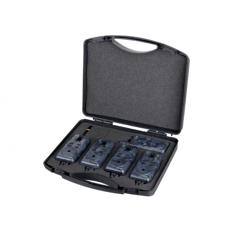 Carp Pro Flapper ST Bite Alarm са надеждни, удобни и съвременни сигнализатори. За по – голямо удобство, сигнализаторите са поставени в куфарче в което има неопренови легълца, които ги предпазват от повреждане и удряне. Carp Pro са се постарали и с външния вид, като сигнализаторите са със стилна камуфлажна окраска. Комплектът включва 4бр. сигнализатори, една майка, връзка за шията за по – удобно носене на майката и сменяеми странични щипки, когато ловите във ветровито време. Всеки сигнализатор има 8 режима на звук, 8 режима на силата на звука и 6 режима на чувствителност. На предния панел има 4 бутона, с които можете да регулирате звука, тона, чувствителността, да превключвате в режим “нощ” и т.н. Всяко сигнално устройство има функция за памет, което дава възможност да се запомнят всички текущи настройки и да не се настройва сигнализаторът от нулата на следващия риболов. Има нощен режим, когато е включен, сигнализиращата ролка на сигнализатора свети. Carp Pro Flapper ST Bite Alarm имат висока защита от влага. Обхват на сигнализаторите до 200м.