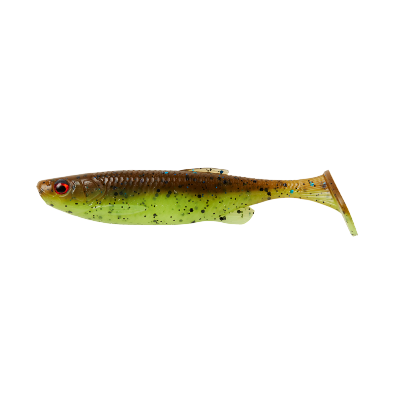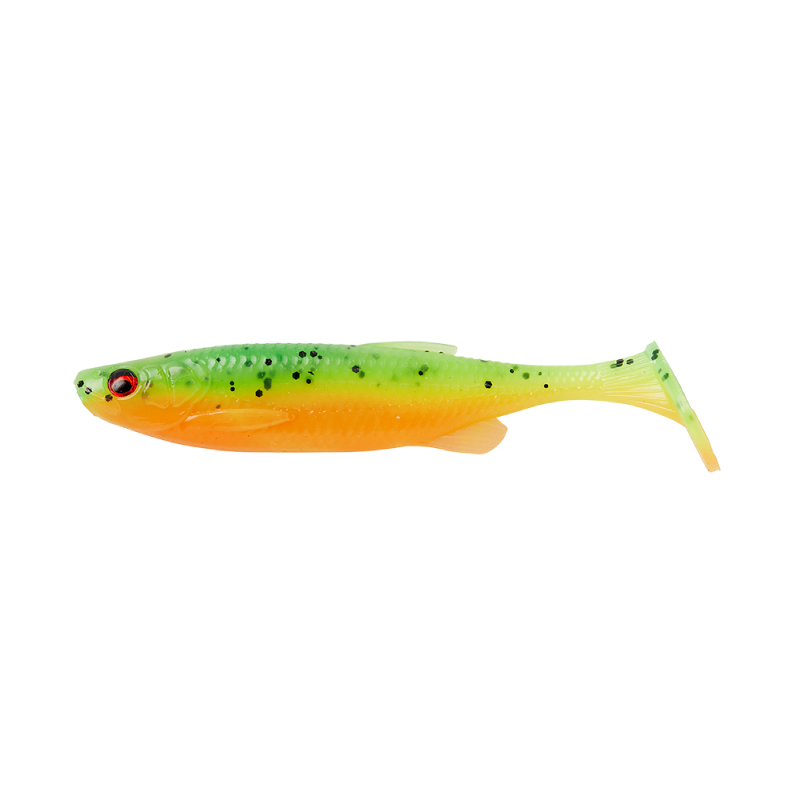 Силикон Savage Gear Fat Minnow T – Tail e силиконова примамка, която има чудесно люлеещо и пулсиращо движение. Подходяща е за равномерно водене с леки глави, също така е супер успешна за ползване с по-тежки глави при джигово водене и вертикален риболов. Удебеленото тяло позволява да се монтира перфектно, на всички видове джигови глави. Изтънената опашка се задвижва при много ниска скорост на водене, а мекия материал от който е направено тяло придава много оживление във водата.