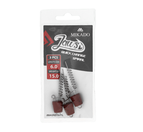 Сменяема джиг глава Mikado Jaws Quick Change Spiral 6.0cm – Спирала за силиконови примамки със система за бърза смяна на теглото, която не изисква премахване на спиралата от примамката по време на процеса, запазвайки гумата непокътната дори когато тежестта трябва да се смени няколко пъти. Дължина на телта: 4.7см. Продават се по 3бр. джиг глави със спирали в плик!