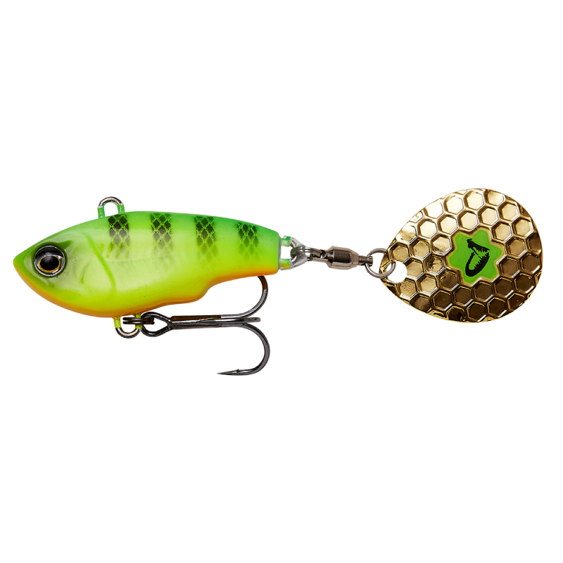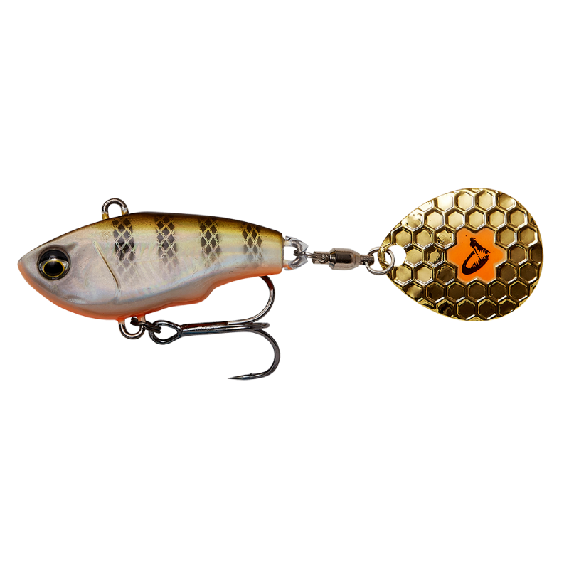 Спинер Savage Gear Fat Tail Spin –  Супер универсална примамка, която може да заметнете на много далечни разстояния. Страхотно действие при равномерно водене, изтегляне или пропадане. Листото се завърта при най-малкото съпротивление,  благодарение на лагера във вирбела. Това не остава незабелязано от хищните риби и атаките са безмилостни. Примамката позволява различни скорости на водене и е подходяща за риболов на река, язовири и езера.