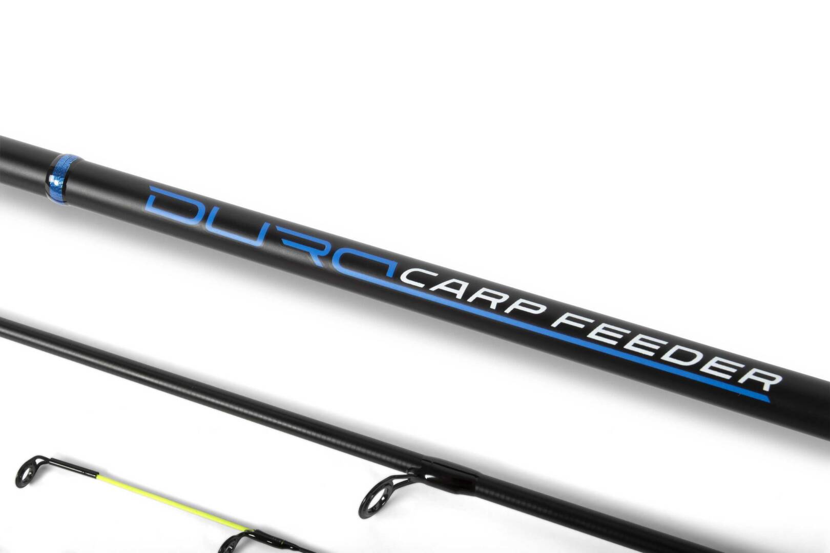 Фидер Preston Dura Carp Feeder 3.60m 60gr – Специално разработен фидер за риболов на шарани на комерсиални водоеми. Фидерът притежава прогресивен строй, който ще победи всяка една закачила се риба. Фидер Preston Dura Carp Feeder 3.60m 60gr е насочен към метод фидер риболова. Подходяща е за замятане на средно далечна дистанция. Прогресивното действие е подходящо не само за риболов на шарани, но за риболов на платика, каракуда и др. Дизайнът от 3 секции го прави по – удобен за транспортиране. В комплекта са включени два върха с диаметър 2.2мм и 2.0 и 2.5oz.