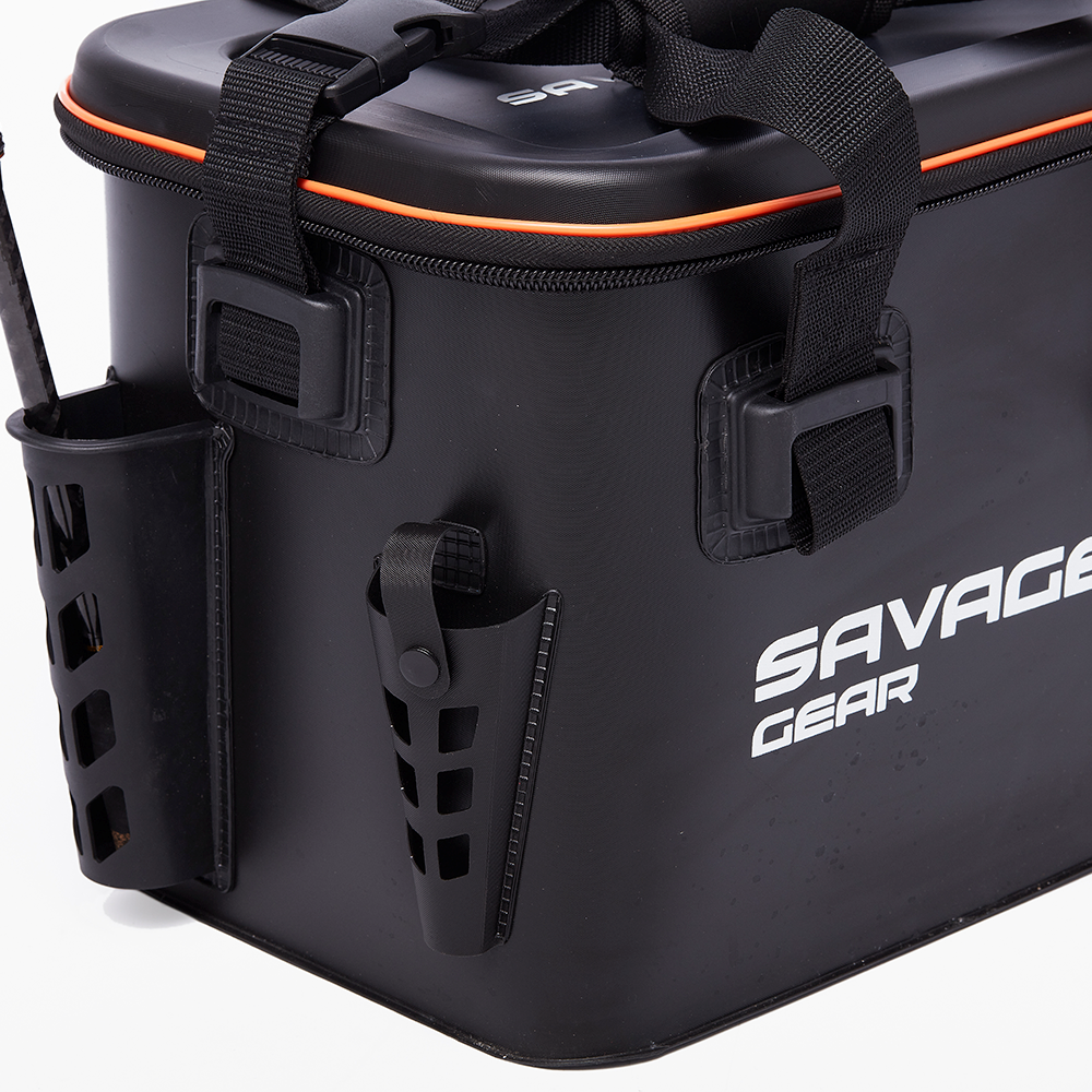 Чанта Savage Gear WPMP Boat and Bank Bag L – Новият модел на добре познатата чанта Boat and Bank на Savage Gear. Чантата е изработена от супер издръжлив EVA материал, който е напълно водоуствойчив. Новата WPMP Boat and Bank е с твърд капак, допълнителен вътрешен мрежест джоб за аксесоари и по – издръжлив материал. Новата чанта също така се отличава и с меки презрамки, които допринасят за допълнителен комфорт. Отвън на чантата отново са разполжени слотове за поставяне и транспортиране на вашата въдица и клещи.