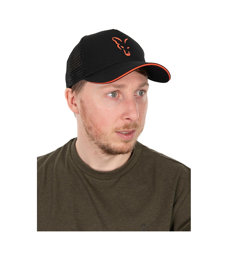 Шапка Fox Collection Trucker Cap Black & Orange в оранжево и черно с Fox лого и мрежеста задна част за повече комфорт по време на летните риболовни дни. Шапката е регулируема и може лесно да бъде съчетана с облекло от колекцията на Fox. Изработена е от 100% полиестер.