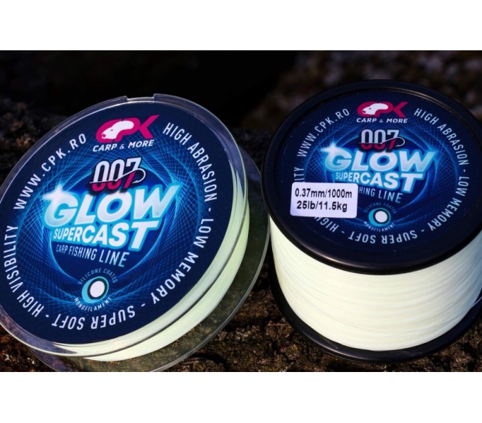 Монофилно влакно CPK Glow Supercast е супер видимо монофилно влакно, както през деня, така и през нощта. То е устойчиво на UV лъчи, което означава, че запазва свойствата си по-дълго, но също така има висока устойчивост на възли и абразия. Силиконовото покритие на линията улеснява лекото приплъзване между водачите и почти нулевата памет го прави влакно с изключителни възможности за дистанция. Цветът е блестящо бял фосфорен.