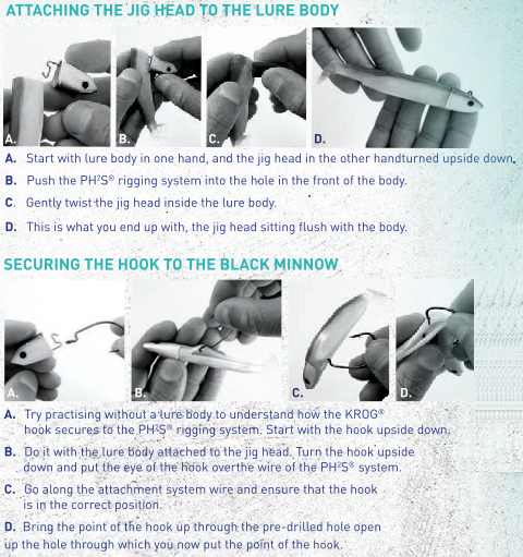 Fiiish Black Minnow Combo №1 – 7 cм, 3гр – включва един готов монтаж и едно резервно тяло. Състои се от 1 бр. глава 3гр., 1 бр. куки и 2 тела. Размерът е 7см. За да се възползвате от други цветове, можете да направите комбинация от отделно предлаганите куки, глави и тела. Важно е да комбинирате един и същ номер. Тези силикони са подходящи както за соленоводен, така и за сладководен риболов.