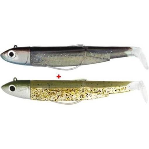 Fiiish Black Minnow Double Combo №3 – 12 cм, 12гр – включва два готови монтажа, в цветове показани на снимката. Състои се от 2 бр. глави 12гр., 2 бр. куки и 2 тела. Размерът е 12см. За да се възползвате от други цветове, можете да направите комбинация от отделно предлаганите куки, глави и тела. Важно е да комбинирате един и същ номер. Тези силикони са подходящи както за соленоводен, така и за сладководен риболов.