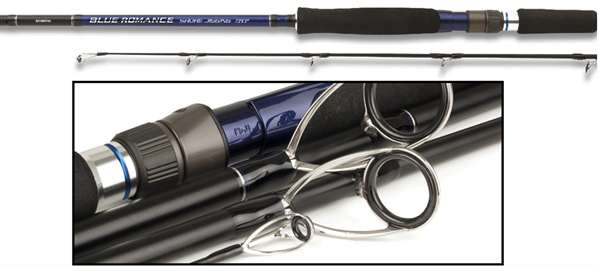Спининг Shimano Blue Romance Spinning Shore Jigging – Когато се говори за морски риболов и дистанция, нищо не може да постигне по – добра дистанция от металния джиг. Именно Blue Romance Shore Jigging е насочена към този риболов с изхвърляща тежест до 80гр. Макародържачът и водачите са изработени от Fuji материал. Пръчката е изключително мощна и здрава, благодарение на нейната бланка изработена от HPC100 Карбон и Biofibre, и без съмнение ще пребори големите морски хищници като Амбърджак, Маятико и други.